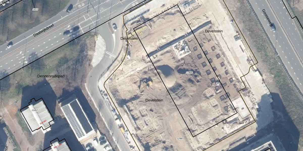 Het perceel waarop Develstein 34-A staat heeft een oppervlakte van 5873 m². Dit is een zeer groot perceel. De perceeloppervlakte wordt geregistreerd door het Kadaster. Gedetailleerde informatie over de maten van dit perceel kunt u vinden in het rapport Kadastrale kaart met maatvoering van Develstein 34-A.
