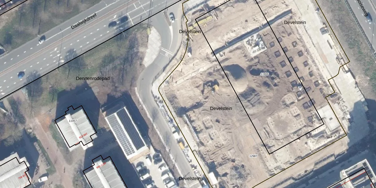 Het perceel waarop Develstein 34-G staat heeft een oppervlakte van 5873 m². Dit is een zeer groot perceel. De perceeloppervlakte wordt geregistreerd door het Kadaster. Gedetailleerde informatie over de maten van dit perceel kunt u vinden in het rapport Kadastrale kaart met maatvoering van Develstein 34-G.
