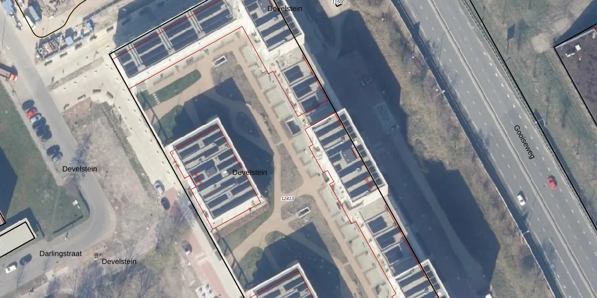 Het perceel waarop Develstein 390 staat heeft een oppervlakte van 8100 m². Dit is een zeer groot perceel. De perceeloppervlakte wordt geregistreerd door het Kadaster. Gedetailleerde informatie over de maten van dit perceel kunt u vinden in het rapport Kadastrale kaart met maatvoering van Develstein 390.