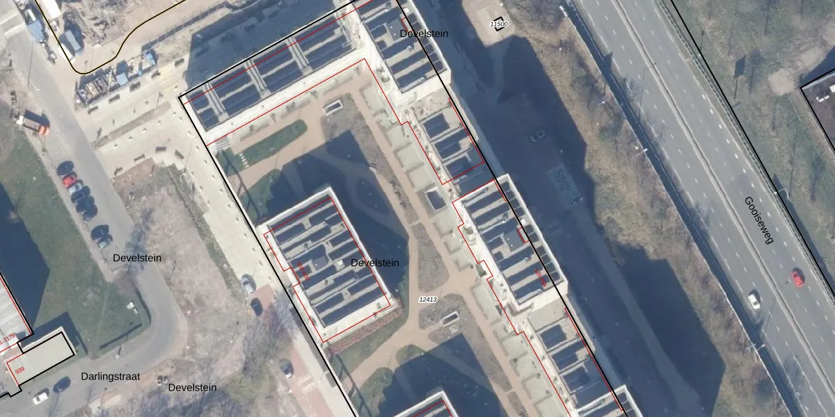 Het perceel waarop Develstein 394 staat heeft een oppervlakte van 8100 m². Dit is een zeer groot perceel. De perceeloppervlakte wordt geregistreerd door het Kadaster. Gedetailleerde informatie over de maten van dit perceel kunt u vinden in het rapport Kadastrale kaart met maatvoering van Develstein 394.