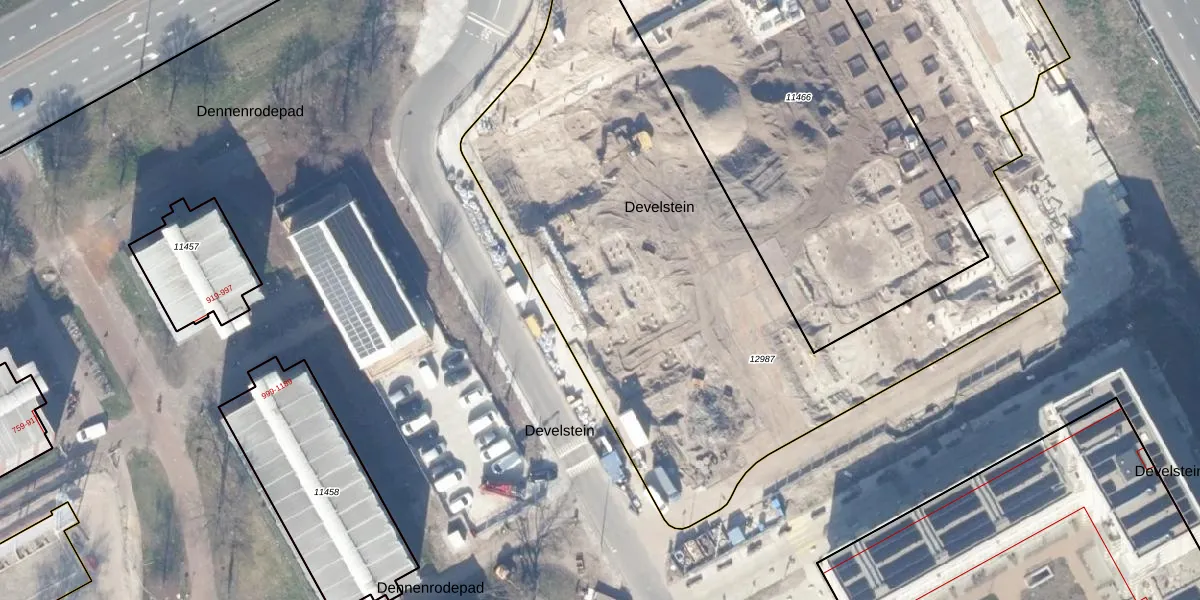 Het perceel waarop Develstein 4-D staat heeft een oppervlakte van 5873 m². Dit is een zeer groot perceel. De perceeloppervlakte wordt geregistreerd door het Kadaster. Gedetailleerde informatie over de maten van dit perceel kunt u vinden in het rapport Kadastrale kaart met maatvoering van Develstein 4-D.