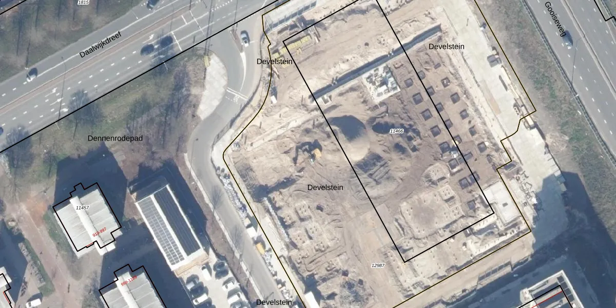 Het perceel waarop Develstein 40-A staat heeft een oppervlakte van 5873 m². Dit is een zeer groot perceel. De perceeloppervlakte wordt geregistreerd door het Kadaster. Gedetailleerde informatie over de maten van dit perceel kunt u vinden in het rapport Kadastrale kaart met maatvoering van Develstein 40-A.