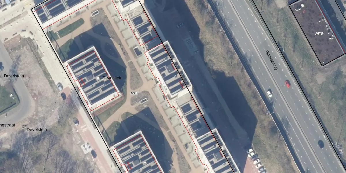 Het perceel waarop Develstein 438 staat heeft een oppervlakte van 8100 m². Dit is een zeer groot perceel. De perceeloppervlakte wordt geregistreerd door het Kadaster. Gedetailleerde informatie over de maten van dit perceel kunt u vinden in het rapport Kadastrale kaart met maatvoering van Develstein 438.