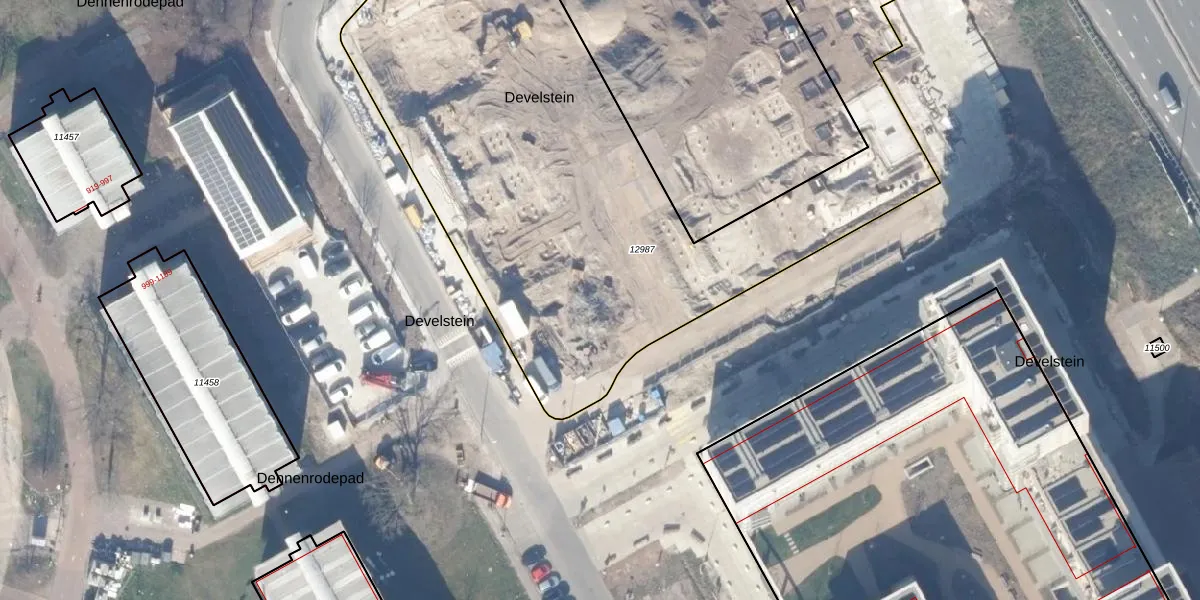Het perceel waarop Develstein 48-E staat heeft een oppervlakte van 5873 m². Dit is een zeer groot perceel. De perceeloppervlakte wordt geregistreerd door het Kadaster. Gedetailleerde informatie over de maten van dit perceel kunt u vinden in het rapport Kadastrale kaart met maatvoering van Develstein 48-E.