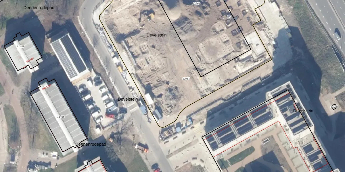 Het perceel waarop Develstein 50-B staat heeft een oppervlakte van 5873 m². Dit is een zeer groot perceel. De perceeloppervlakte wordt geregistreerd door het Kadaster. Gedetailleerde informatie over de maten van dit perceel kunt u vinden in het rapport Kadastrale kaart met maatvoering van Develstein 50-B.
