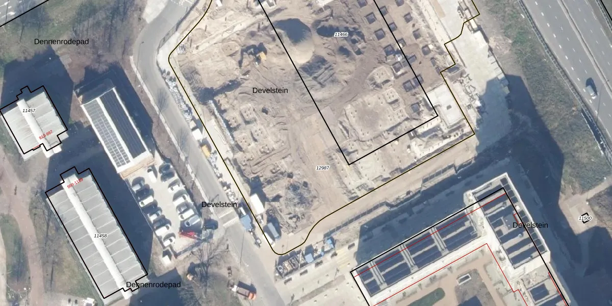 Het perceel waarop Develstein 54-F staat heeft een oppervlakte van 5873 m². Dit is een zeer groot perceel. De perceeloppervlakte wordt geregistreerd door het Kadaster. Gedetailleerde informatie over de maten van dit perceel kunt u vinden in het rapport Kadastrale kaart met maatvoering van Develstein 54-F.