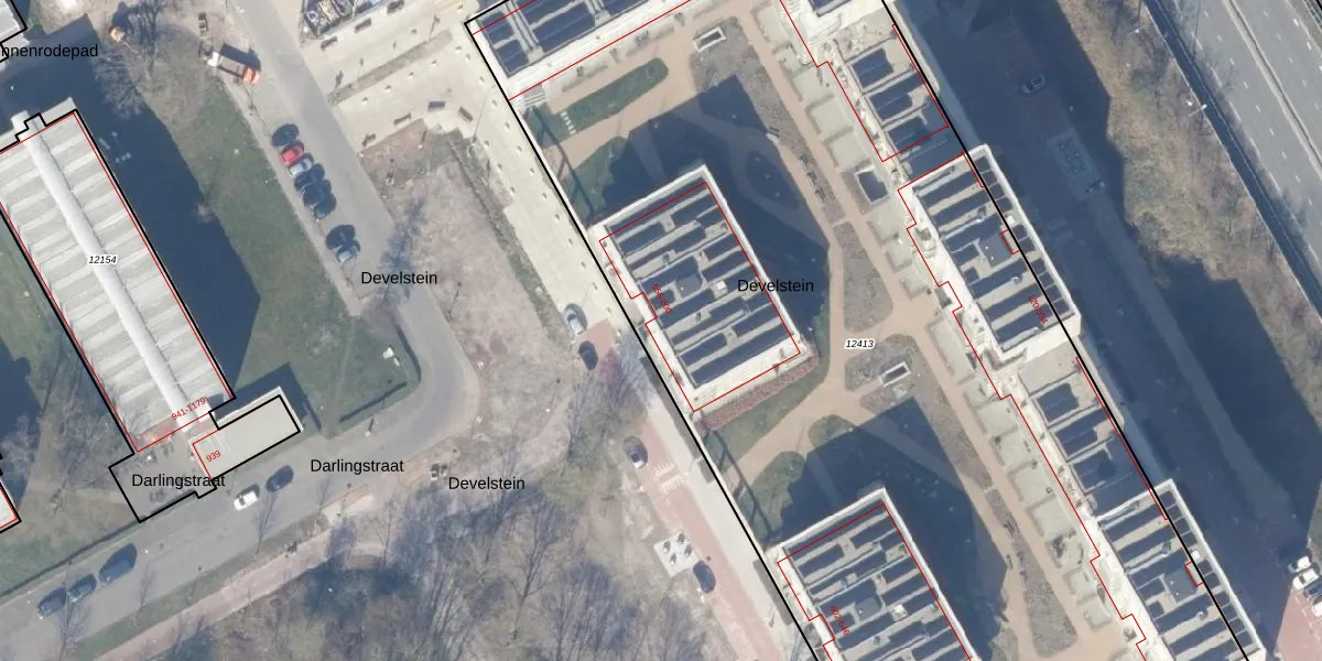 Het perceel waarop Develstein 560 staat heeft een oppervlakte van 8100 m². Dit is een zeer groot perceel. De perceeloppervlakte wordt geregistreerd door het Kadaster. Gedetailleerde informatie over de maten van dit perceel kunt u vinden in het rapport Kadastrale kaart met maatvoering van Develstein 560.