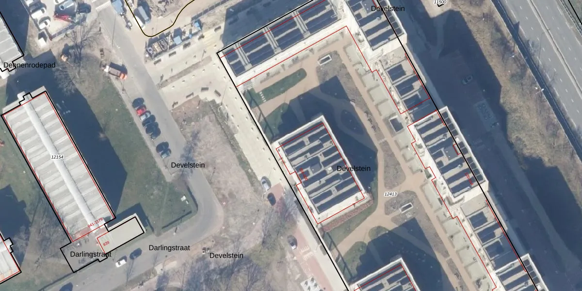 Het perceel waarop Develstein 566 staat heeft een oppervlakte van 8100 m². Dit is een zeer groot perceel. De perceeloppervlakte wordt geregistreerd door het Kadaster. Gedetailleerde informatie over de maten van dit perceel kunt u vinden in het rapport Kadastrale kaart met maatvoering van Develstein 566.