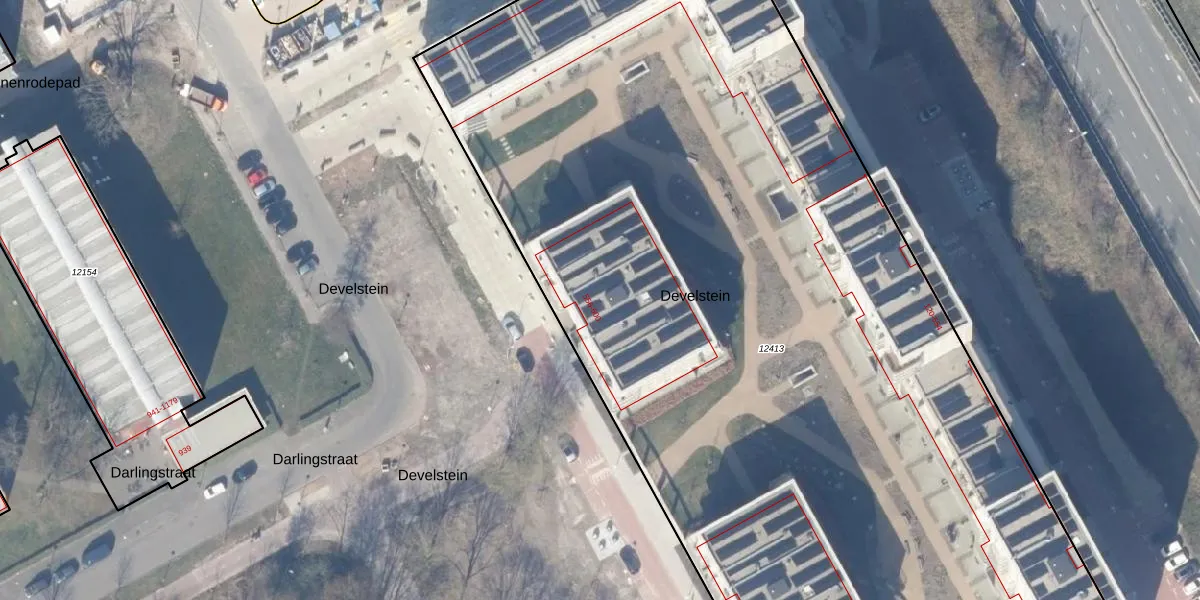 Het perceel waarop Develstein 570 staat heeft een oppervlakte van 8100 m². Dit is een zeer groot perceel. De perceeloppervlakte wordt geregistreerd door het Kadaster. Gedetailleerde informatie over de maten van dit perceel kunt u vinden in het rapport Kadastrale kaart met maatvoering van Develstein 570.