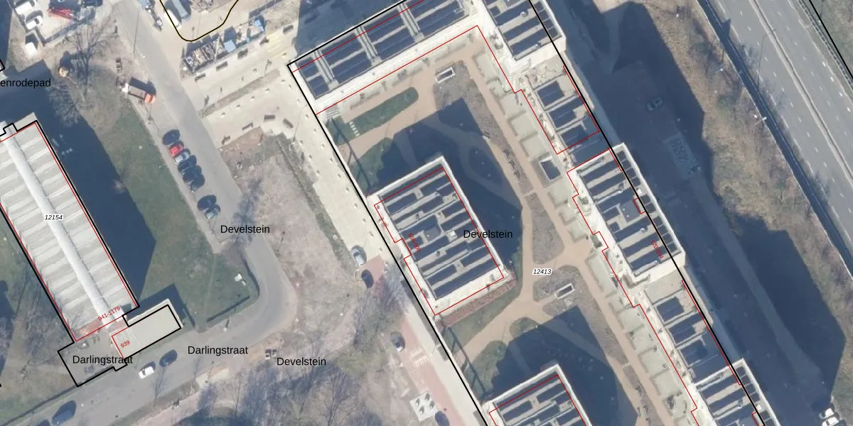 Het perceel waarop Develstein 580 staat heeft een oppervlakte van 8100 m². Dit is een zeer groot perceel. De perceeloppervlakte wordt geregistreerd door het Kadaster. Gedetailleerde informatie over de maten van dit perceel kunt u vinden in het rapport Kadastrale kaart met maatvoering van Develstein 580.