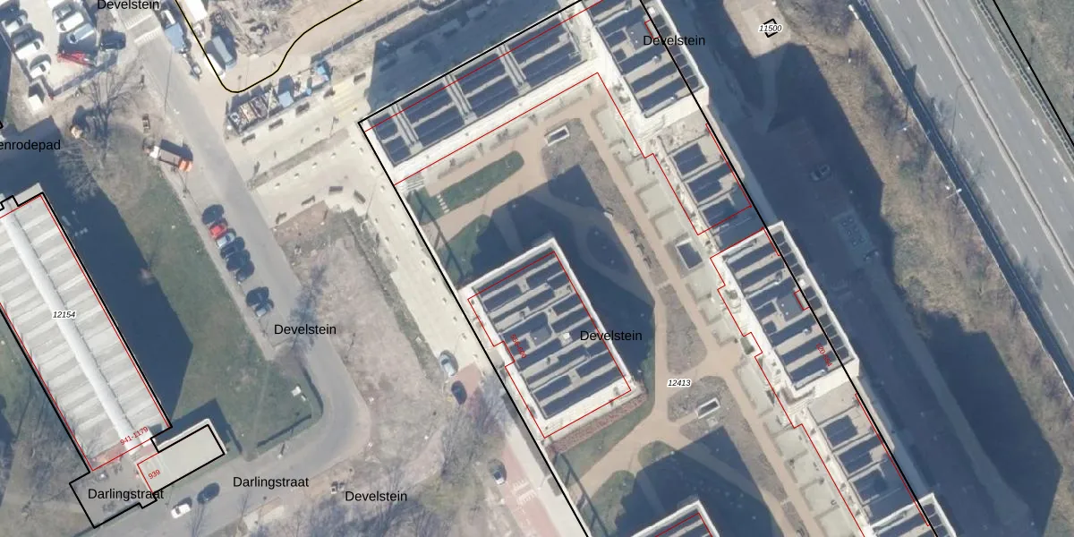Het perceel waarop Develstein 590 staat heeft een oppervlakte van 8100 m². Dit is een zeer groot perceel. De perceeloppervlakte wordt geregistreerd door het Kadaster. Gedetailleerde informatie over de maten van dit perceel kunt u vinden in het rapport Kadastrale kaart met maatvoering van Develstein 590.