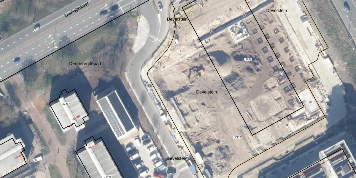 Het perceel waarop Develstein 6-F staat heeft een oppervlakte van 5873 m². Dit is een zeer groot perceel. De perceeloppervlakte wordt geregistreerd door het Kadaster. Gedetailleerde informatie over de maten van dit perceel kunt u vinden in het rapport Kadastrale kaart met maatvoering van Develstein 6-F.