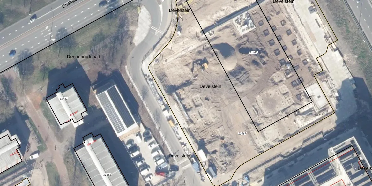 Het perceel waarop Develstein 6-H staat heeft een oppervlakte van 5873 m². Dit is een zeer groot perceel. De perceeloppervlakte wordt geregistreerd door het Kadaster. Gedetailleerde informatie over de maten van dit perceel kunt u vinden in het rapport Kadastrale kaart met maatvoering van Develstein 6-H.