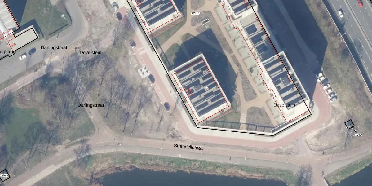 Develstein 604 is gelegen op kadastraal perceel WPK02L12413. Deze kadastrale aanduiding is uniek en wordt gebruikt door het Kadaster om eigendomsrechten en andere zakelijke rechten vast te leggen. Het perceel maakt onderdeel uit van de kadastrale gemeente Weesperkarspel.