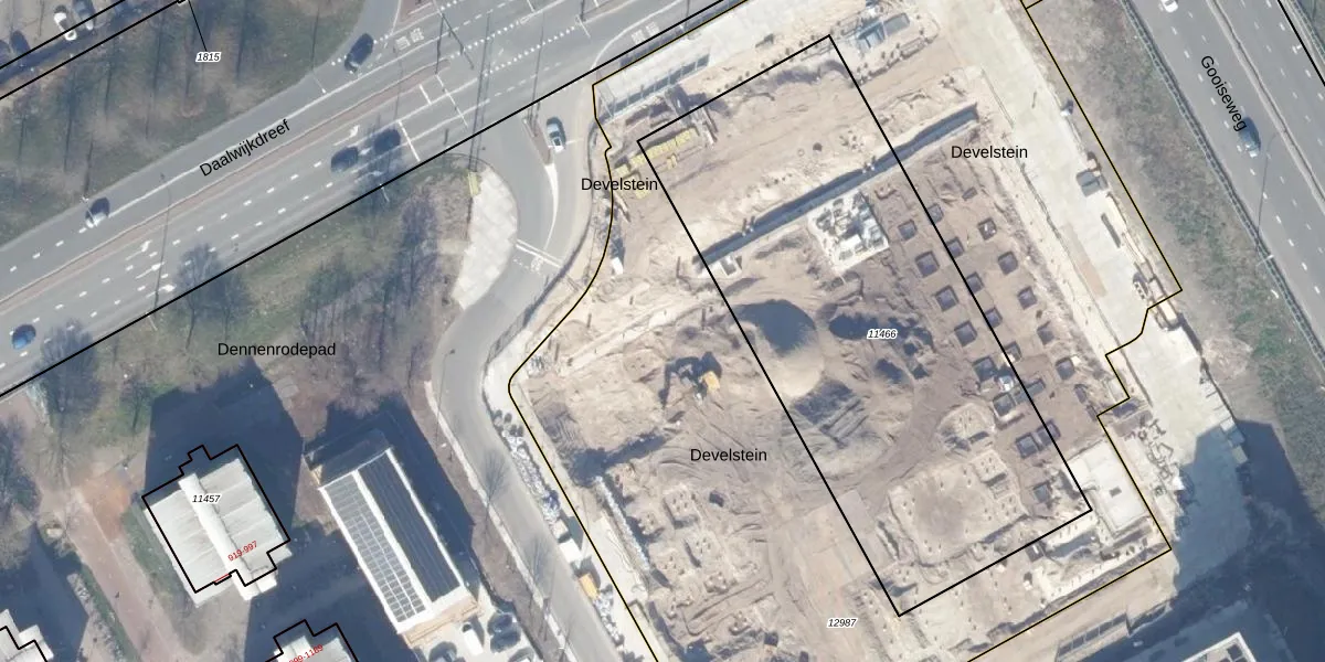 Het perceel waarop Develstein 66-C staat heeft een oppervlakte van 5873 m². Dit is een zeer groot perceel. De perceeloppervlakte wordt geregistreerd door het Kadaster. Gedetailleerde informatie over de maten van dit perceel kunt u vinden in het rapport Kadastrale kaart met maatvoering van Develstein 66-C.