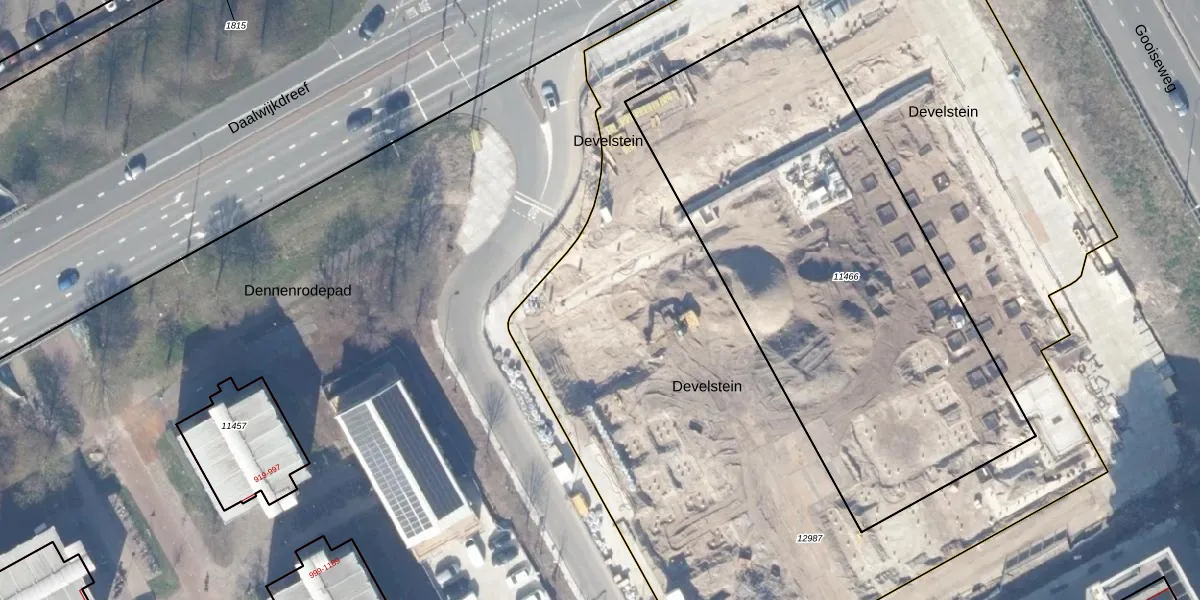Het perceel waarop Develstein 66-F staat heeft een oppervlakte van 5873 m². Dit is een zeer groot perceel. De perceeloppervlakte wordt geregistreerd door het Kadaster. Gedetailleerde informatie over de maten van dit perceel kunt u vinden in het rapport Kadastrale kaart met maatvoering van Develstein 66-F.