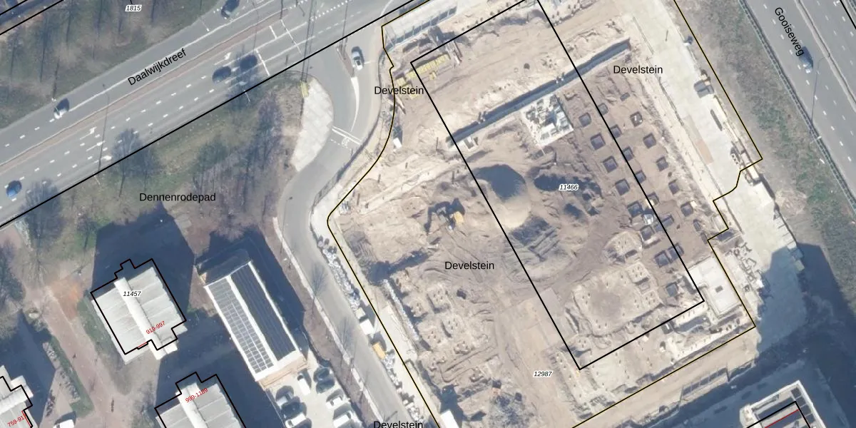 Het perceel waarop Develstein 68-M staat heeft een oppervlakte van 5873 m². Dit is een zeer groot perceel. De perceeloppervlakte wordt geregistreerd door het Kadaster. Gedetailleerde informatie over de maten van dit perceel kunt u vinden in het rapport Kadastrale kaart met maatvoering van Develstein 68-M.