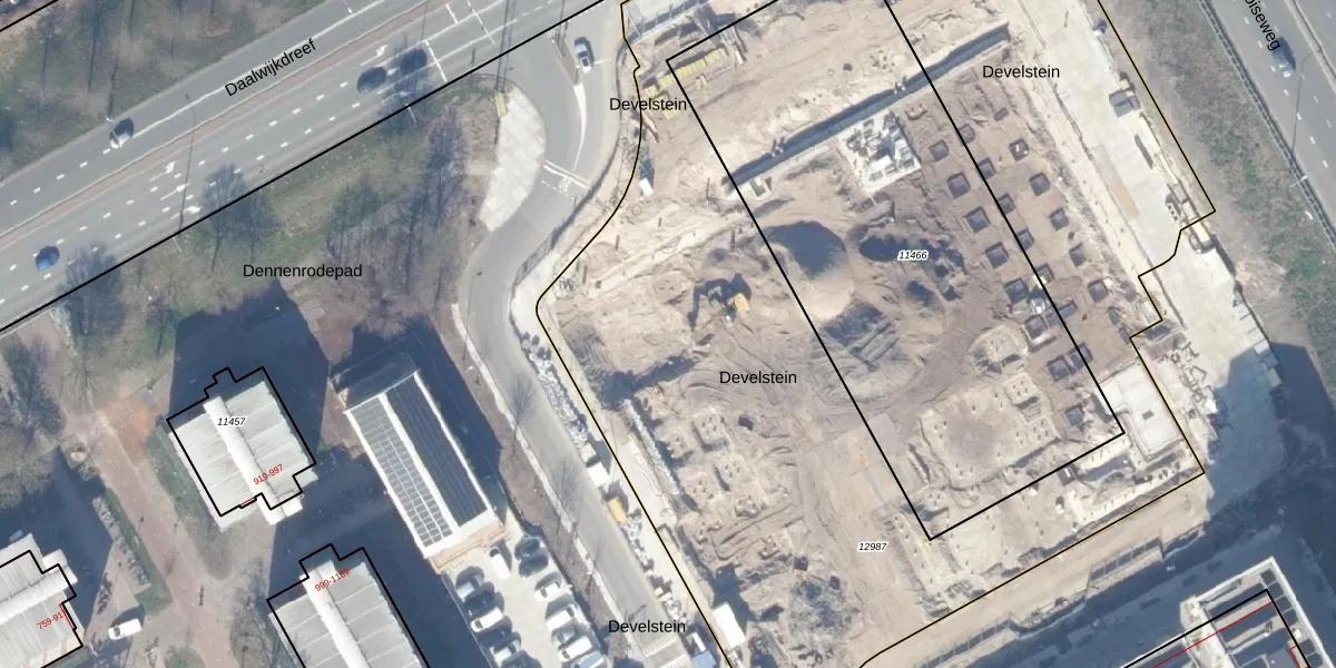 Het perceel waarop Develstein 70-M staat heeft een oppervlakte van 5873 m². Dit is een zeer groot perceel. De perceeloppervlakte wordt geregistreerd door het Kadaster. Gedetailleerde informatie over de maten van dit perceel kunt u vinden in het rapport Kadastrale kaart met maatvoering van Develstein 70-M.