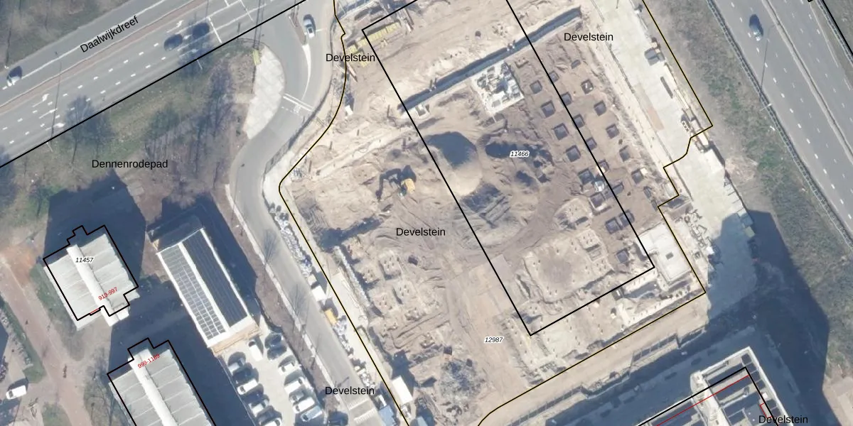 Het perceel waarop Develstein 74-L staat heeft een oppervlakte van 5873 m². Dit is een zeer groot perceel. De perceeloppervlakte wordt geregistreerd door het Kadaster. Gedetailleerde informatie over de maten van dit perceel kunt u vinden in het rapport Kadastrale kaart met maatvoering van Develstein 74-L.
