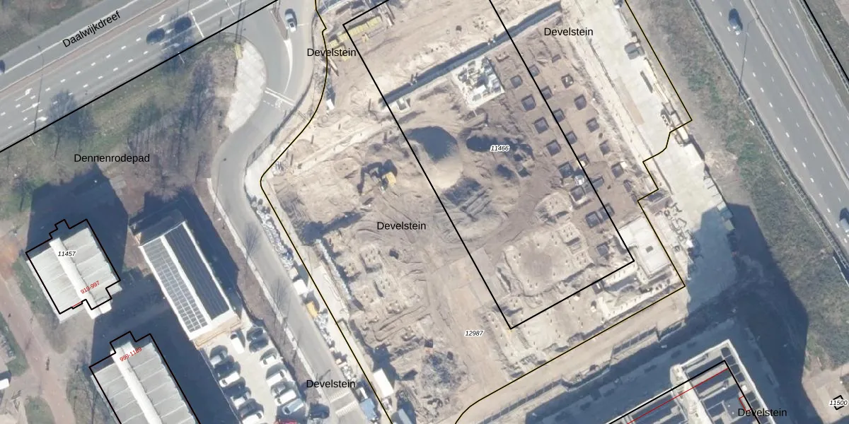 Het perceel waarop Develstein 76-F staat heeft een oppervlakte van 5873 m². Dit is een zeer groot perceel. De perceeloppervlakte wordt geregistreerd door het Kadaster. Gedetailleerde informatie over de maten van dit perceel kunt u vinden in het rapport Kadastrale kaart met maatvoering van Develstein 76-F.
