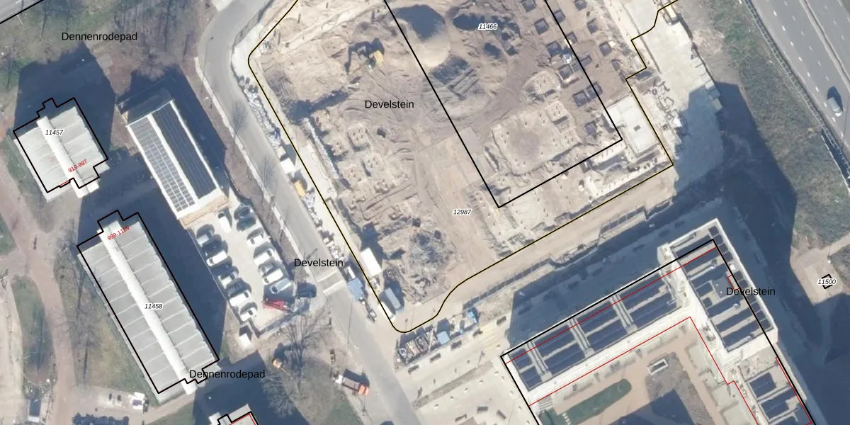 Het perceel waarop Develstein 82-G staat heeft een oppervlakte van 5873 m². Dit is een zeer groot perceel. De perceeloppervlakte wordt geregistreerd door het Kadaster. Gedetailleerde informatie over de maten van dit perceel kunt u vinden in het rapport Kadastrale kaart met maatvoering van Develstein 82-G.