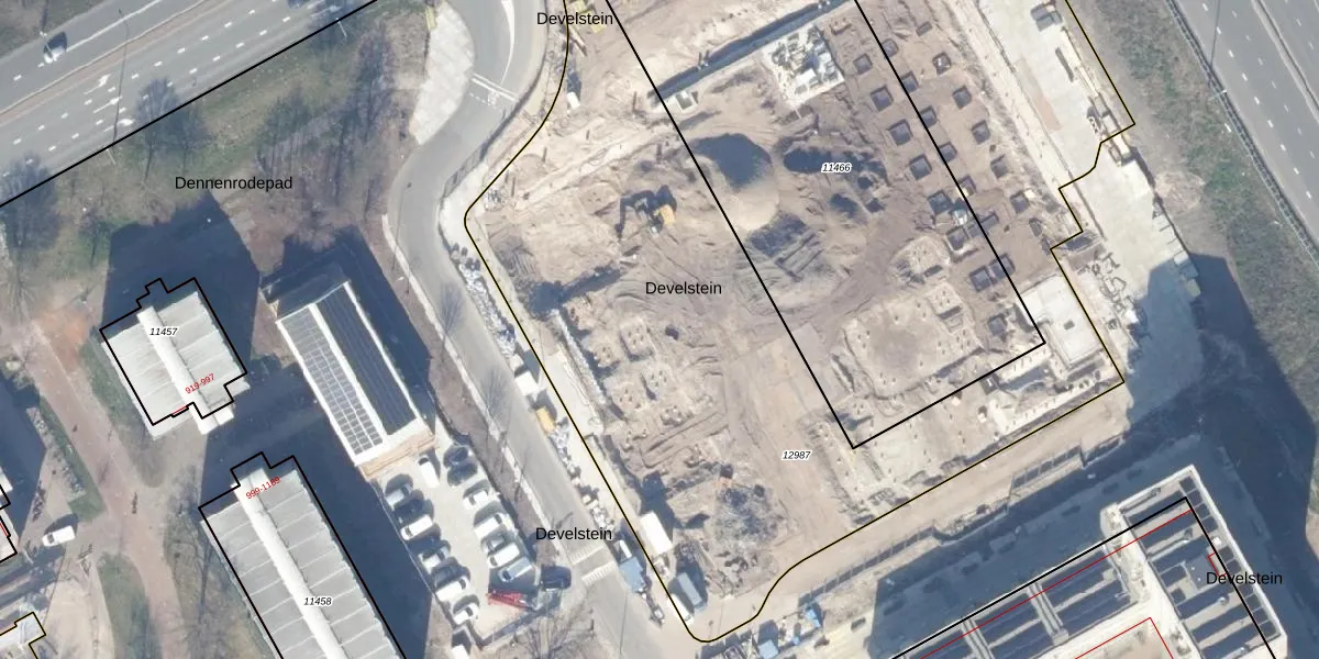 Het perceel waarop Develstein 86 staat heeft een oppervlakte van 5873 m². Dit is een zeer groot perceel. De perceeloppervlakte wordt geregistreerd door het Kadaster. Gedetailleerde informatie over de maten van dit perceel kunt u vinden in het rapport Kadastrale kaart met maatvoering van Develstein 86.