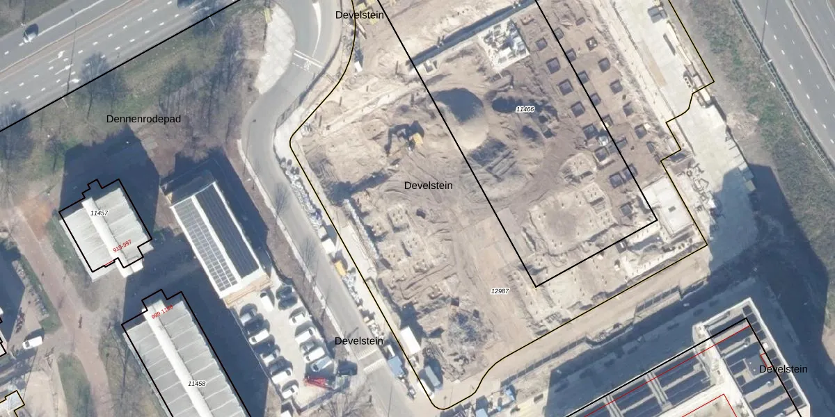 Het perceel waarop Develstein 88 staat heeft een oppervlakte van 5873 m². Dit is een zeer groot perceel. De perceeloppervlakte wordt geregistreerd door het Kadaster. Gedetailleerde informatie over de maten van dit perceel kunt u vinden in het rapport Kadastrale kaart met maatvoering van Develstein 88.