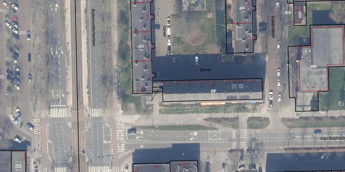 Het perceel waarop Dever 14 staat heeft een oppervlakte van 720 m². Dit is een groot perceel. De perceeloppervlakte wordt geregistreerd door het Kadaster. Gedetailleerde informatie over de maten van dit perceel kunt u vinden in het rapport Kadastrale kaart met maatvoering van Dever 14.
