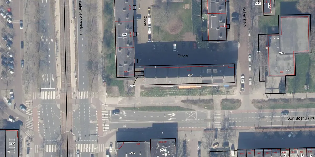 Het perceel waarop Dever 30 staat heeft een oppervlakte van 720 m². Dit is een groot perceel. De perceeloppervlakte wordt geregistreerd door het Kadaster. Gedetailleerde informatie over de maten van dit perceel kunt u vinden in het rapport Kadastrale kaart met maatvoering van Dever 30.