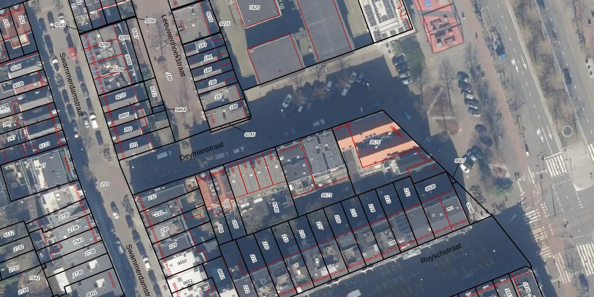Het perceel waarop Deymanstraat 14-A-2 staat heeft een oppervlakte van 492 m². Dit is een groot perceel. De perceeloppervlakte wordt geregistreerd door het Kadaster. Gedetailleerde informatie over de maten van dit perceel kunt u vinden in het rapport Kadastrale kaart met maatvoering van Deymanstraat 14-A-2.
