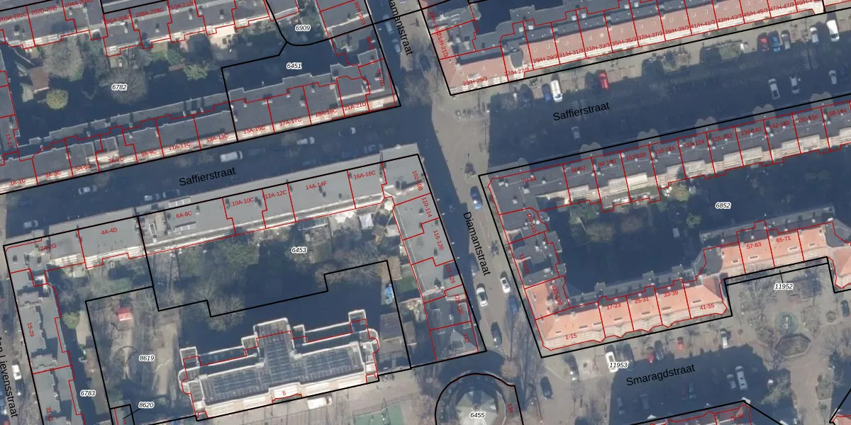 Diamantstraat 112 is gelegen op kadastraal perceel ASD18V6453. Deze kadastrale aanduiding is uniek en wordt gebruikt door het Kadaster om eigendomsrechten en andere zakelijke rechten vast te leggen. Het perceel maakt onderdeel uit van de kadastrale gemeente Amsterdam.