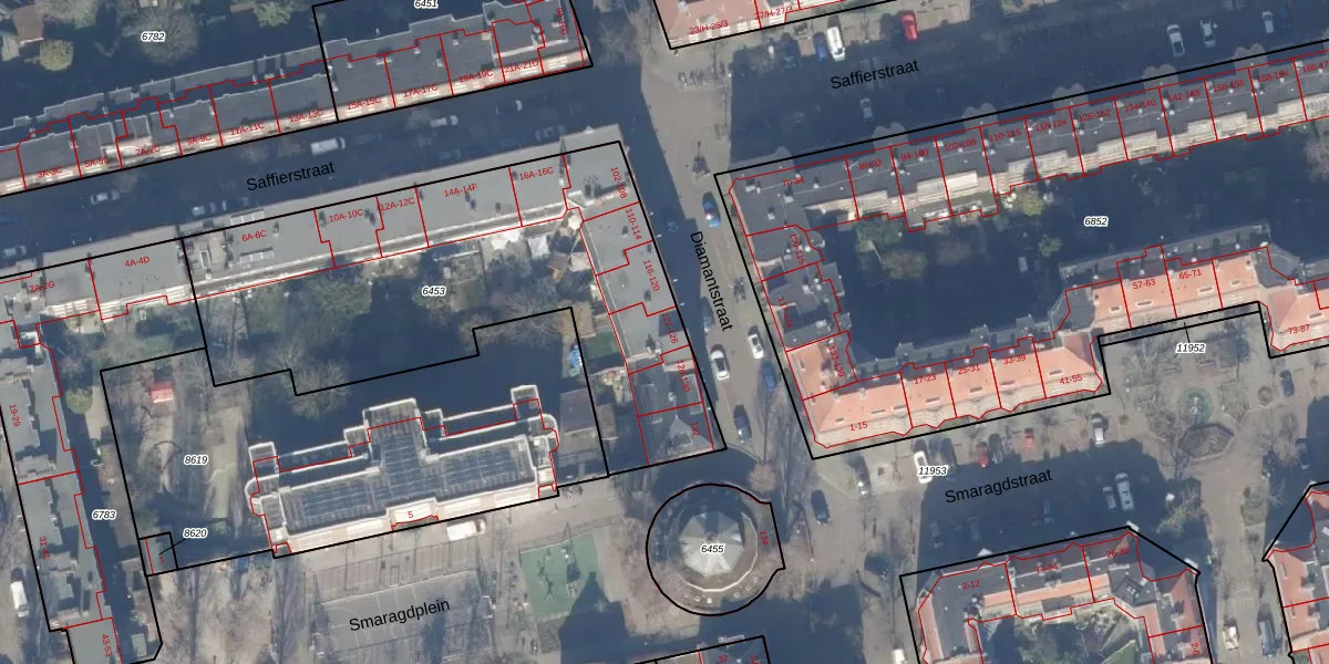 Het adres is gelegen op perceel 6453 in de sectie V en de kadastrale gemeente Amsterdam. De kadastrale aanduiding is aldus ASD18-V-6453. De oppervlakte van het perceel is 2109 m². Dat is groter dan gemiddeld in Amsterdam, waar de gemiddelde perceeloppervlakte op 558,8 m² ligt. De grootste perceeloppervlakte in de kadastrale gemeente is 12,5 ha. De kleinste oppervlakte bedraagt 0 m². Op het perceel zijn 38 adressen aanwezig. In de Basisregistratie Kadaster (BRK) werden de grenzen van het perceel geregistreerd op 17-10-2006.
