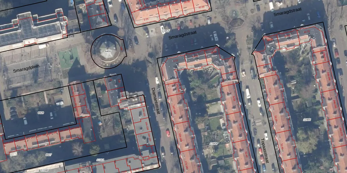 Het perceel waarop Diamantstraat 145 staat heeft een oppervlakte van 4395 m². Dit is een zeer groot perceel. De perceeloppervlakte wordt geregistreerd door het Kadaster. Gedetailleerde informatie over de maten van dit perceel kunt u vinden in het rapport Kadastrale kaart met maatvoering van Diamantstraat 145.
