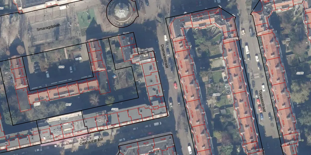 Het perceel waarop Diamantstraat 154 staat heeft een oppervlakte van 1577 m². Dit is een zeer groot perceel. De perceeloppervlakte wordt geregistreerd door het Kadaster. Gedetailleerde informatie over de maten van dit perceel kunt u vinden in het rapport Kadastrale kaart met maatvoering van Diamantstraat 154.