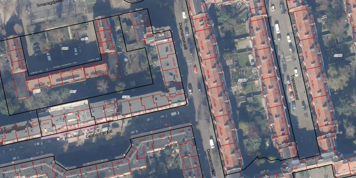 Diamantstraat 166 is gelegen op kadastraal perceel ASD18V11161. Deze kadastrale aanduiding is uniek en wordt gebruikt door het Kadaster om eigendomsrechten en andere zakelijke rechten vast te leggen. Het perceel maakt onderdeel uit van de kadastrale gemeente Amsterdam.