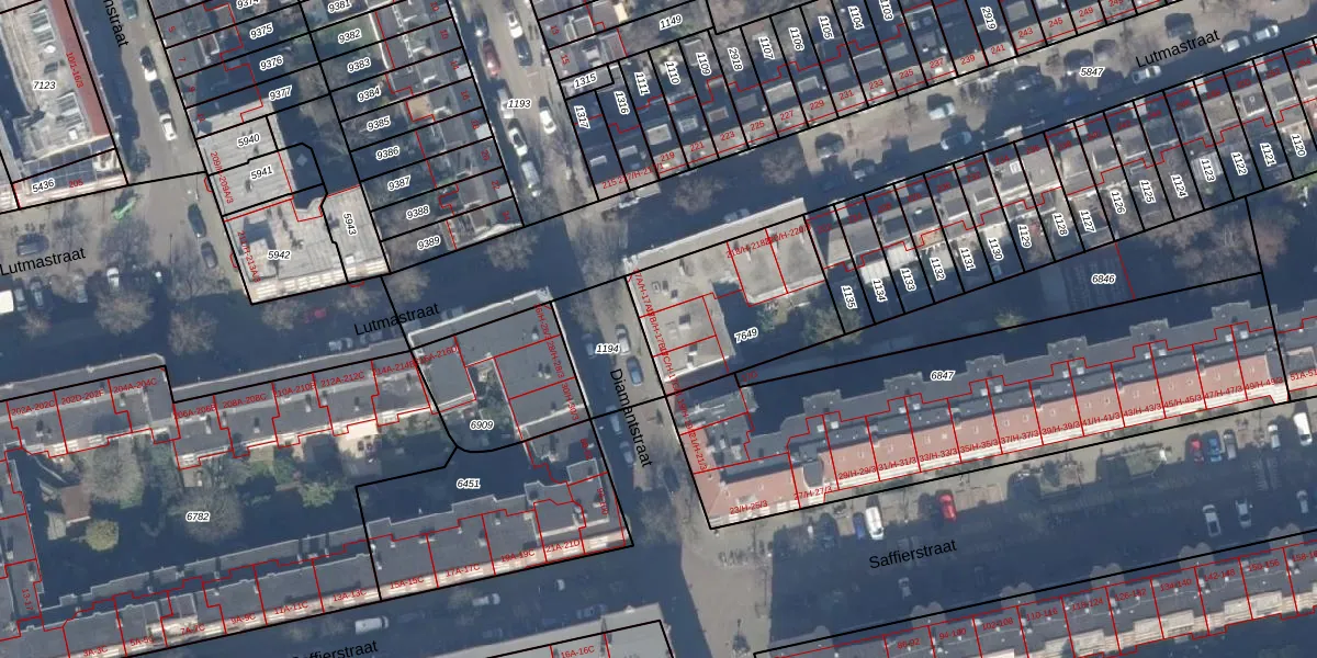 Het perceel waarop Diamantstraat 17-B-H staat heeft een oppervlakte van 548 m². Dit is een groot perceel. De perceeloppervlakte wordt geregistreerd door het Kadaster. Gedetailleerde informatie over de maten van dit perceel kunt u vinden in het rapport Kadastrale kaart met maatvoering van Diamantstraat 17-B-H.