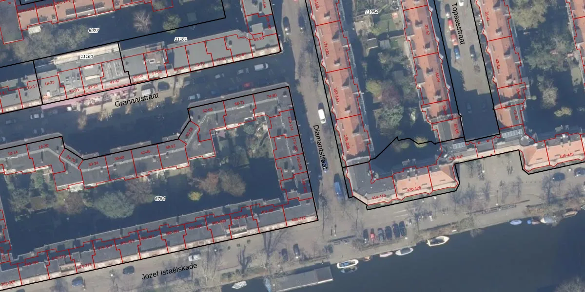Het adres is gelegen op perceel 6784 in de sectie V en de kadastrale gemeente Amsterdam. De kadastrale aanduiding is aldus ASD18-V-6784. De oppervlakte van het perceel is 4996 m². Dat is groter dan gemiddeld in Amsterdam, waar de gemiddelde perceeloppervlakte op 558,8 m² ligt. De grootste perceeloppervlakte in de kadastrale gemeente is 12,5 ha. De kleinste oppervlakte bedraagt 0 m². Er zijn 113 adressen aanwezig op het perceel. In de Basisregistratie Kadaster (BRK) werden de grenzen van het perceel geregistreerd op 17-10-2006.
