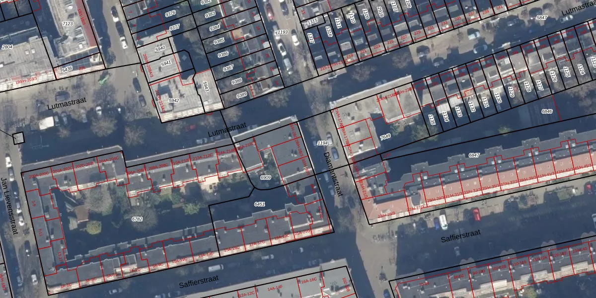 Het adres is gelegen op perceel 6909 in de sectie V en de kadastrale gemeente Amsterdam. De kadastrale aanduiding is aldus ASD18-V-6909. Het perceel is 398 m² groot. Dat is kleiner dan de gemiddelde perceeloppervlakte in Amsterdam, dat op 558,8 m² ligt. De grootste perceeloppervlakte in de kadastrale gemeente is 12,5 ha. De kleinste oppervlakte bedraagt 0 m². Op het perceel zijn 16 adressen aanwezig. De laatste wijziging in het de Basisregistratie Kadaster (BRK) was op 17-10-2006.