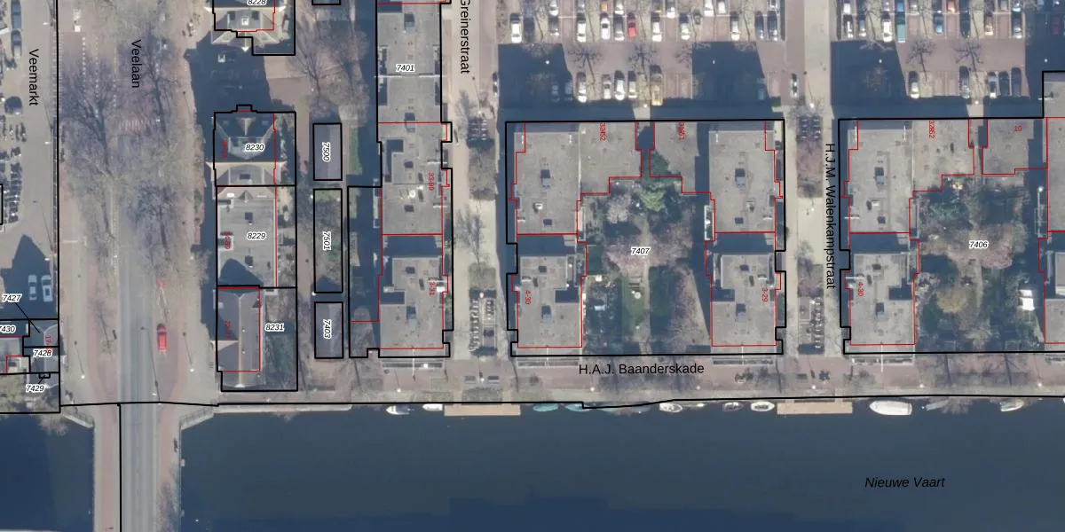 Het adres is gelegen op perceel 7407 in de sectie A en de kadastrale gemeente Amsterdam. De kadastrale aanduiding is aldus ASD02-A-7407. Het perceel is 2273 m² groot. Dat is kleiner dan de gemiddelde perceeloppervlakte in Amsterdam, dat op 2763,93 m² ligt. Het kleinste perceel in de kadastrale gemeente is 0 m² groot. De grootste perceeloppervlakte is 14,3 ha. Op het perceel liggen in totaal 52 adressen. In de Basisregistratie Kadaster (BRK) werden de grenzen van het perceel geregistreerd op 24-10-2007.