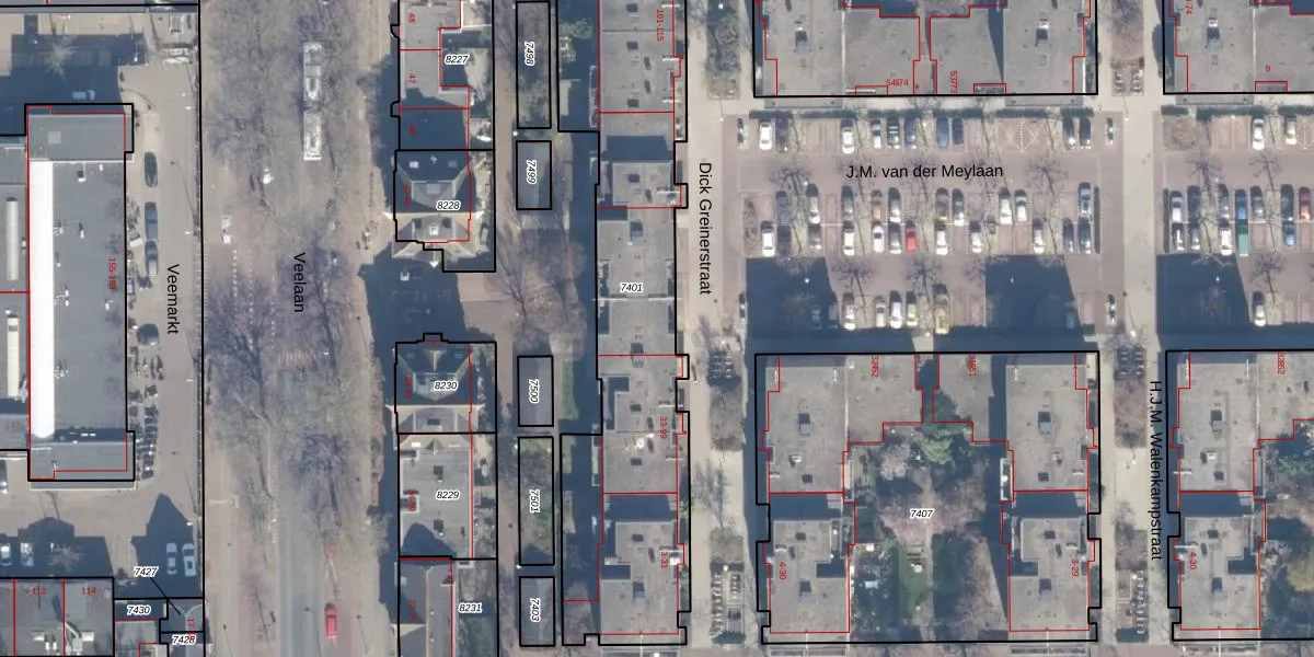 Dick Greinerstraat 53 is gelegen op kadastraal perceel ASD02A7401. Deze kadastrale aanduiding is uniek en wordt gebruikt door het Kadaster om eigendomsrechten en andere zakelijke rechten vast te leggen. Het perceel maakt onderdeel uit van de kadastrale gemeente Amsterdam.