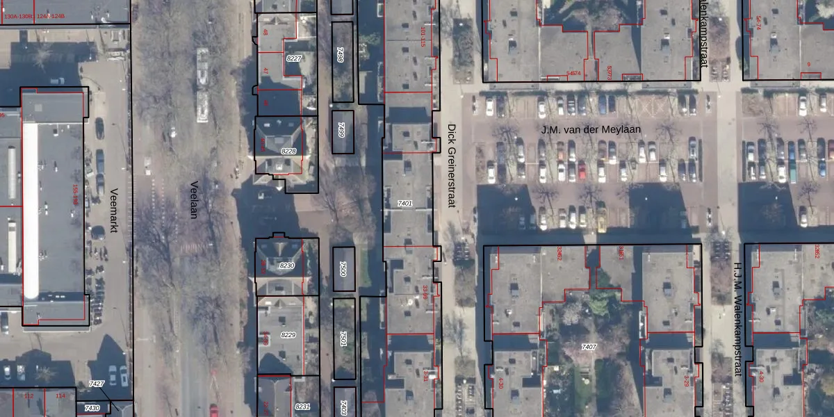 Dick Greinerstraat 61 is gelegen op kadastraal perceel ASD02A7401. Deze kadastrale aanduiding is uniek en wordt gebruikt door het Kadaster om eigendomsrechten en andere zakelijke rechten vast te leggen. Het perceel maakt onderdeel uit van de kadastrale gemeente Amsterdam.