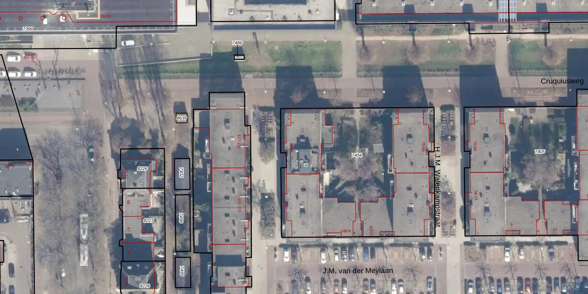 Het adres is gelegen op perceel 7404 in de sectie A en de kadastrale gemeente Amsterdam. De kadastrale aanduiding is aldus ASD02-A-7404. Het perceel is 2274 m² groot. Dat is kleiner dan de gemiddelde perceeloppervlakte in Amsterdam, dat op 2763,93 m² ligt. Het kleinste perceel in de kadastrale gemeente is 0 m² groot. De grootste perceeloppervlakte is 14,3 ha. Op het perceel liggen in totaal 46 adressen. In de Basisregistratie Kadaster (BRK) werden de grenzen van het perceel geregistreerd op 24-10-2007.