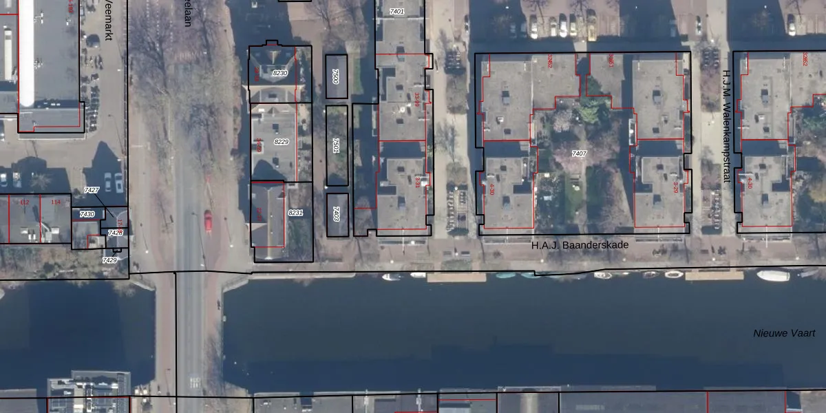 Het adres is gelegen op perceel 7401 in de sectie A en de kadastrale gemeente Amsterdam. De kadastrale aanduiding is aldus ASD02-A-7401. Het perceel is 2164 m² groot. Dat is kleiner dan de gemiddelde perceeloppervlakte in Amsterdam, dat op 2767,13 m² ligt. Het grootste perceel in de kadastrale gemeente is 14,3 ha. Het kleinste perceel heeft een oppervlakte van 0 m². Er zijn 67 adressen aanwezig op het perceel. In de Basisregistratie Kadaster (BRK) werden de grenzen van het perceel geregistreerd op 24-10-2007.