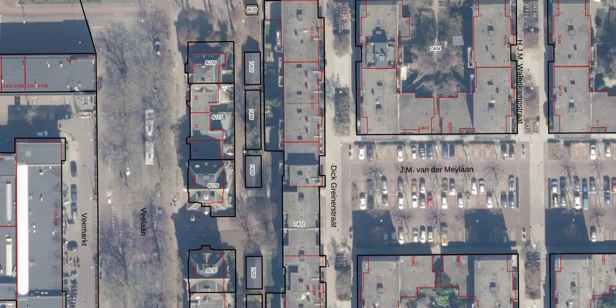 Het perceel waarop Dick Greinerstraat 97 staat heeft een oppervlakte van 2164 m². Dit is een zeer groot perceel. De perceeloppervlakte wordt geregistreerd door het Kadaster. Gedetailleerde informatie over de maten van dit perceel kunt u vinden in het rapport Kadastrale kaart met maatvoering van Dick Greinerstraat 97.