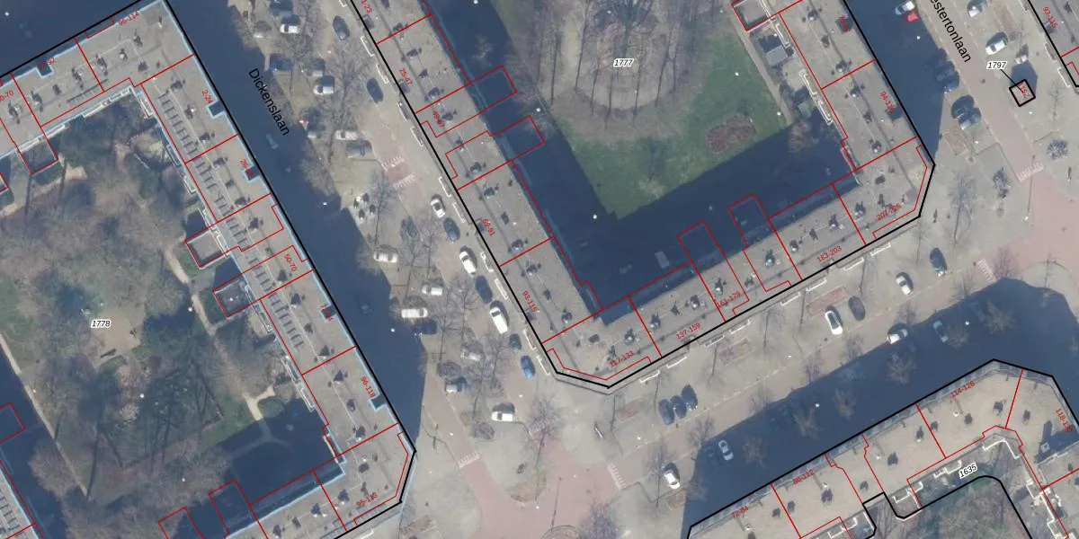 Dickenslaan 107 is gelegen op kadastraal perceel WPK02A1777. Deze kadastrale aanduiding is uniek en wordt gebruikt door het Kadaster om eigendomsrechten en andere zakelijke rechten vast te leggen. Het perceel maakt onderdeel uit van de kadastrale gemeente Weesperkarspel.