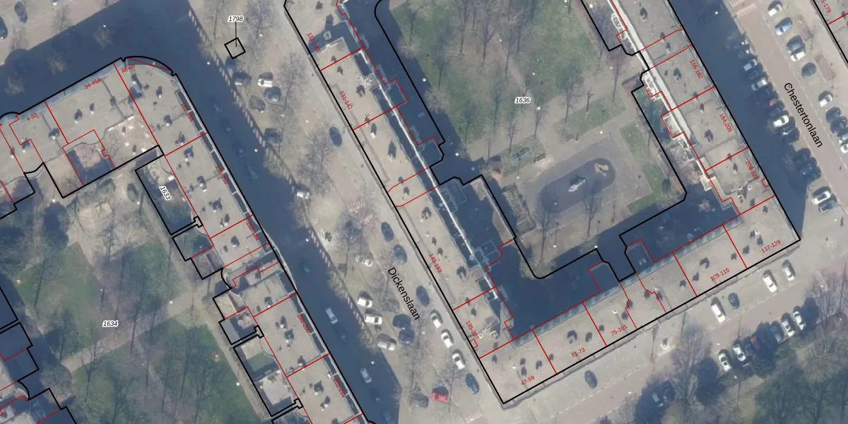 Het perceel waarop Dickenslaan 163 staat heeft een oppervlakte van 5723 m². Dit is een zeer groot perceel. De perceeloppervlakte wordt geregistreerd door het Kadaster. Gedetailleerde informatie over de maten van dit perceel kunt u vinden in het rapport Kadastrale kaart met maatvoering van Dickenslaan 163.