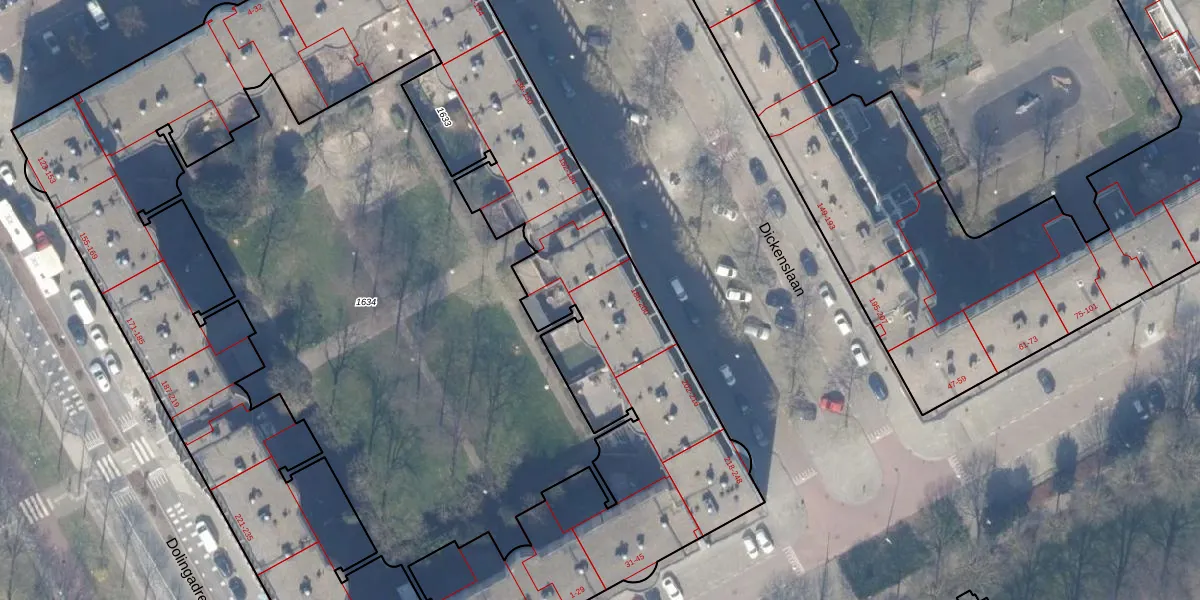 Dickenslaan 188 is gelegen op kadastraal perceel WPK02A1633. Deze kadastrale aanduiding is uniek en wordt gebruikt door het Kadaster om eigendomsrechten en andere zakelijke rechten vast te leggen. Het perceel maakt onderdeel uit van de kadastrale gemeente Weesperkarspel.