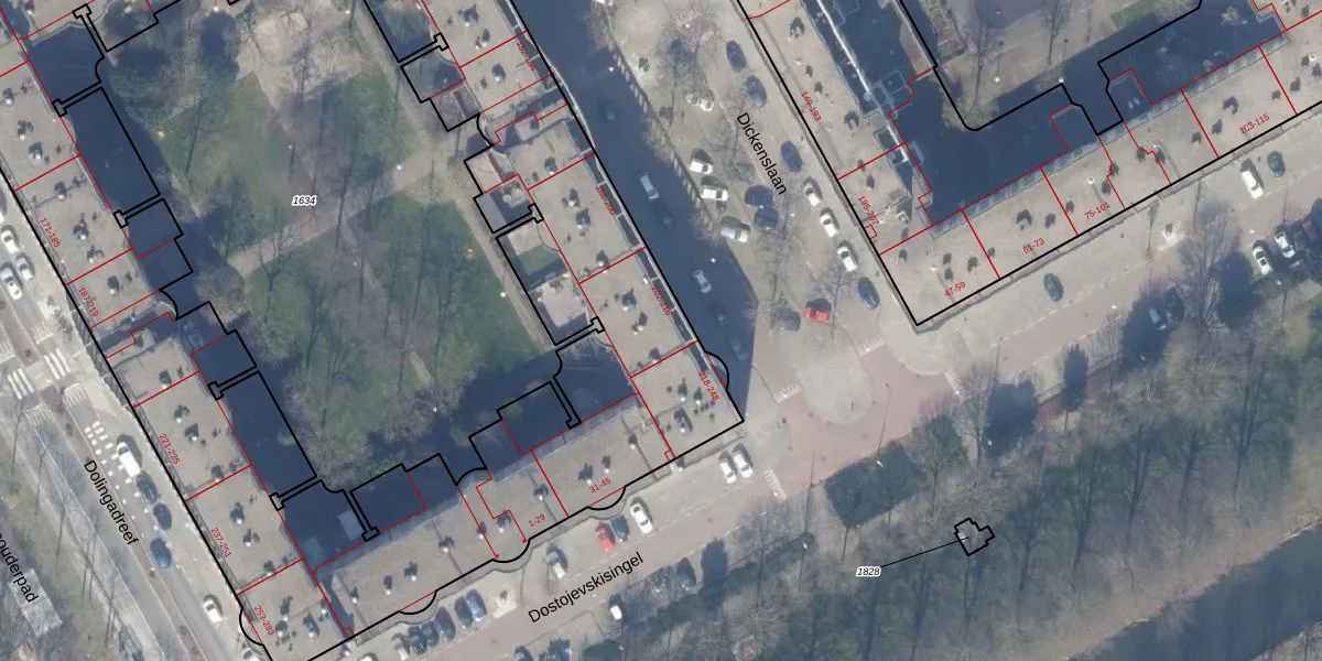 Het perceel waarop Dickenslaan 214 staat heeft een oppervlakte van 5818 m². Dit is een zeer groot perceel. De perceeloppervlakte wordt geregistreerd door het Kadaster. Gedetailleerde informatie over de maten van dit perceel kunt u vinden in het rapport Kadastrale kaart met maatvoering van Dickenslaan 214.