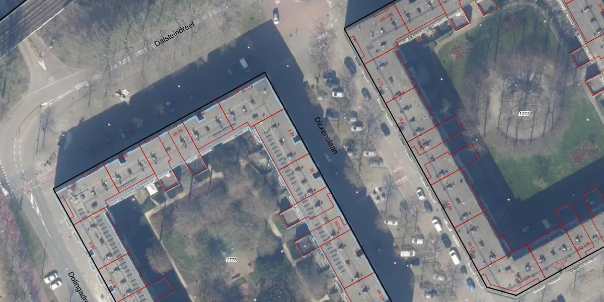 Het perceel waarop Dickenslaan 24 staat heeft een oppervlakte van 8370 m². Dit is een zeer groot perceel. De perceeloppervlakte wordt geregistreerd door het Kadaster. Gedetailleerde informatie over de maten van dit perceel kunt u vinden in het rapport Kadastrale kaart met maatvoering van Dickenslaan 24.