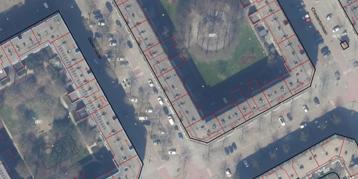 Dickenslaan 89 is gelegen op kadastraal perceel WPK02A1777. Deze kadastrale aanduiding is uniek en wordt gebruikt door het Kadaster om eigendomsrechten en andere zakelijke rechten vast te leggen. Het perceel maakt onderdeel uit van de kadastrale gemeente Weesperkarspel.